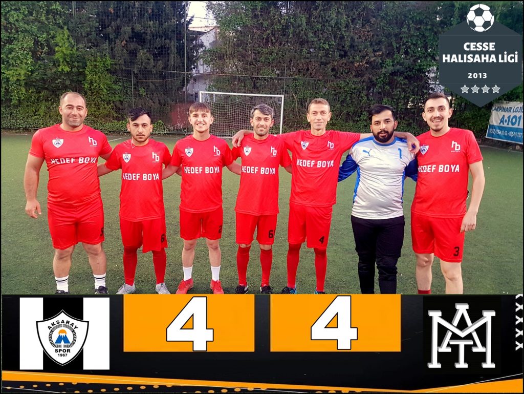 Aksaray Spor gruptan çıkma şansını kaybetmesine rağmen çıktığı prestij maçında grup lideri Mat Teknik’e karşı üst düzey bir mücadele sergiledi ve kazanabilecekleri maçtan 1 puanla ayrılarak grubun son maçında teselli ikramiye almış oldu. 2 maçta puan alamayan ekip bu maçta oldukça istekli bir oyun sergilerken son vuruşlardaki şanssızlıklarıyla çok büyük fırsat tepti ve maçın genelini önde götürdüğü müsabakadan 1 puanla yetindi. Net pozisyonlara giren ekip dünyaları kaçırırken Emrah’ın kurtarışlarıyla devleştiği maçta gollerin 4 ü de Rıza’dan geldi.