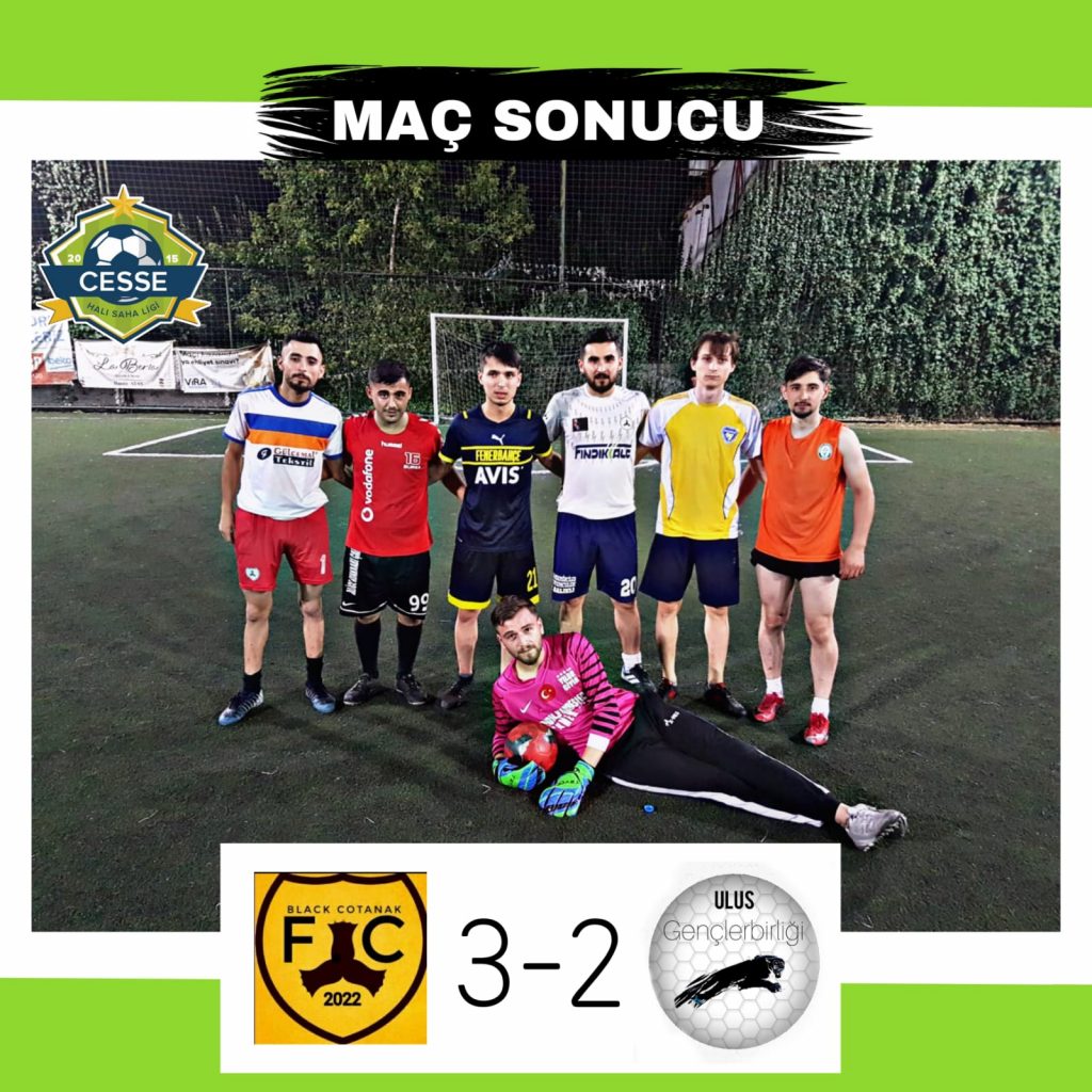 Black Çotanak Ligde çıktığı ilk maçta başarılı bir performans sergilerken son Şampiyon Ulus Gb takımını 3 2 lik skorla geçip lige galibiyetle merhaba dediler. Maç boyunca istekli bir oyun sergileyen ekip iyi savunma yaparken kontra toplarla rakip kalede etkili oldular. Skor avantajını korumasını bilen ekip savunmada da minimum hatayla oynadılar ve güçlü rakibini geçmesini bildiler. İlker 2 golüyle takımın en skorer ismi olurken diğer gol Enes’ten geldi.