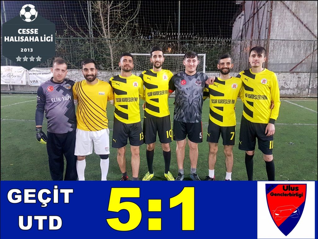 Geçit Utd güçlü rakibi karşısında maç boyunca oyun disiplininden kopmazken mücadeleci oyunlarının karşılığını galibiyetle alıp sezonun ilk galibiyetine imza attılar. Sezon başından beri ligin üst sıra takımlarına karşı dişe diş mücadele sergileyip mağlubiyet yüzü görmeyen ekip bu maçta da yine ligin iyi takımlarından Ulus Gb takımına karşı iyi mücadele ederek 4 puanın sahibi oldu. Yine uzun toplarla rakip kalede etkili olan ekip savunmada dirençli görüntü sergilerken rakibe karşı kalesini gole kapattılar. Fırat 2 golle takımın en skorer ismi olurken diğer goller Murat, Burak ve Celal’den geldi.