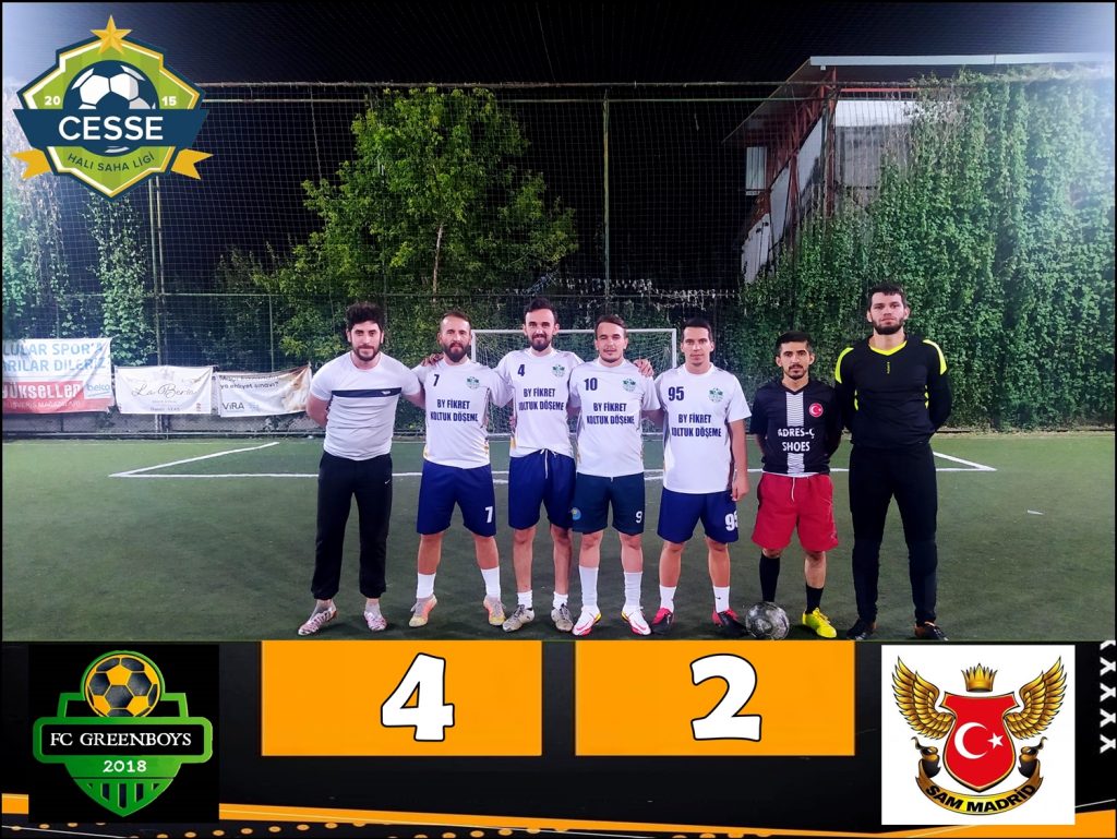Ligin iki güçlü ekibi Greenboys ve San Madrid karşı karşıya geldi. Greenboys güçlü rakibi karşısında kısa paslarla rakip kaleye gitmeye çalışırken birden fazla gol pozisyonuyla baş başa kaldı. Buldukları pozisyonları değerlendiremeyen Greenboys takımı uzaktan denedikleri şutlarla rakip kaleyi yokladı. Orta sahada Oktay’ın harika performansı sayesinde maça tutunan Greenboys ekibi maçın büyük bir bölümüne hakim olarak oynadı. Şutlarla goller bulan ekip skor farkını açmaya başladı. Stoper de hatalar yapan Greenboys takımı kalesinde goller gördü. Skoru koruyamayan Greenboys hızlı ve tek paslarla defansta top çevirerek rakibi yormaya çalıştı. Efor bakımından maçın 2. yarısında sıkıntılar çeken Greenboys rakibinin daha dinamik ve genç olmasından dolayı kanatlarda bir hayli adam tutmakta zorlandılar. Oktay’ın kendi yarı sahasından attığı muhteşem vole golü de sezonun en iyi golleri arasına girdi ve bize bir kez daha yeteneğini kanıtlamış oldu. Takımın en golcü ismi attığı 2 golle Oktay oldu. 2. yarının son 6 dakikasına girerken kafa topuna çıkan Oktay talihsiz bir sakatlık yaşadı ve maç hakemin kararıyla sona erdi.