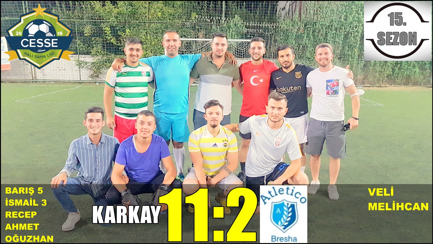 Karkay takımı uzun bir aranın ardından lige bomba gibi dönüş yaparken yaptıkları takviyelerle oldukça etkili bir oyun oynadılar ve sahadan farklı skorla galip ayrıldılar. Pozisyon üretmekte zorlanmayan ekip birbirinden güzel gollere imza atarken gollerin dışında oynanan güzel pas oyunu da izleyenlerin gözünün pasını sildi. Barış ileri uçtaki bitiriciliği ile takıma 5 gollük katkı sağlarken Ahmet ve İsmail orta alanda oldukça etkili performans sergilediler, İsmail 3, Ahmet ise 1 gol ve asistleriyle skora ciddi katkı sağladı.