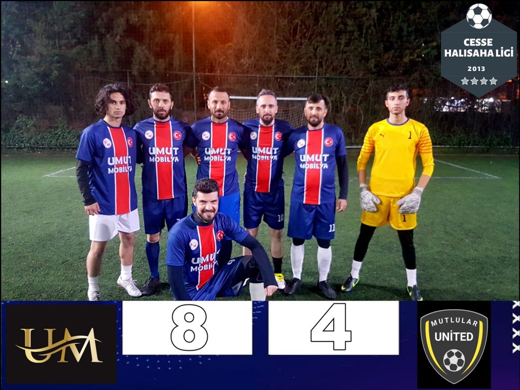 Umut Mobilya Master Cup açılış maçında genç rakibini çok da zorlanmadan farklı bir skorla geçerken grup maçlarına iyi bir başlangıç yaptı. Maça favori olarak çıkan ekip aslında kendilerini çok da sıkmadan oynadılar ve tecrübelerini de kullanarak genç rakibi karşısında iyi bir oyunla sahadan 8 4 lük skorla galip ayrıldılar. Erkan, Emrah ve Yusuf 2 şer golle takımın skor yükünü çeken isimler oldular.