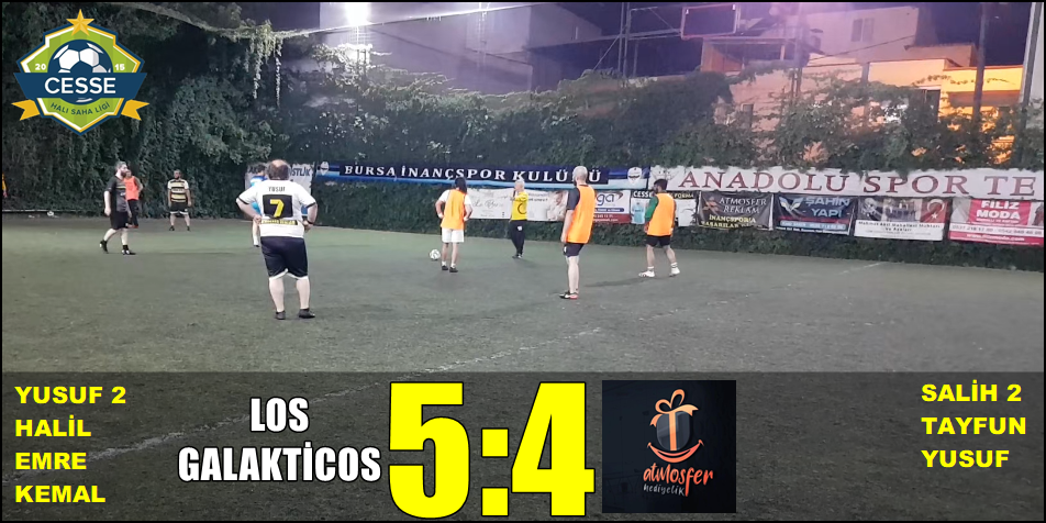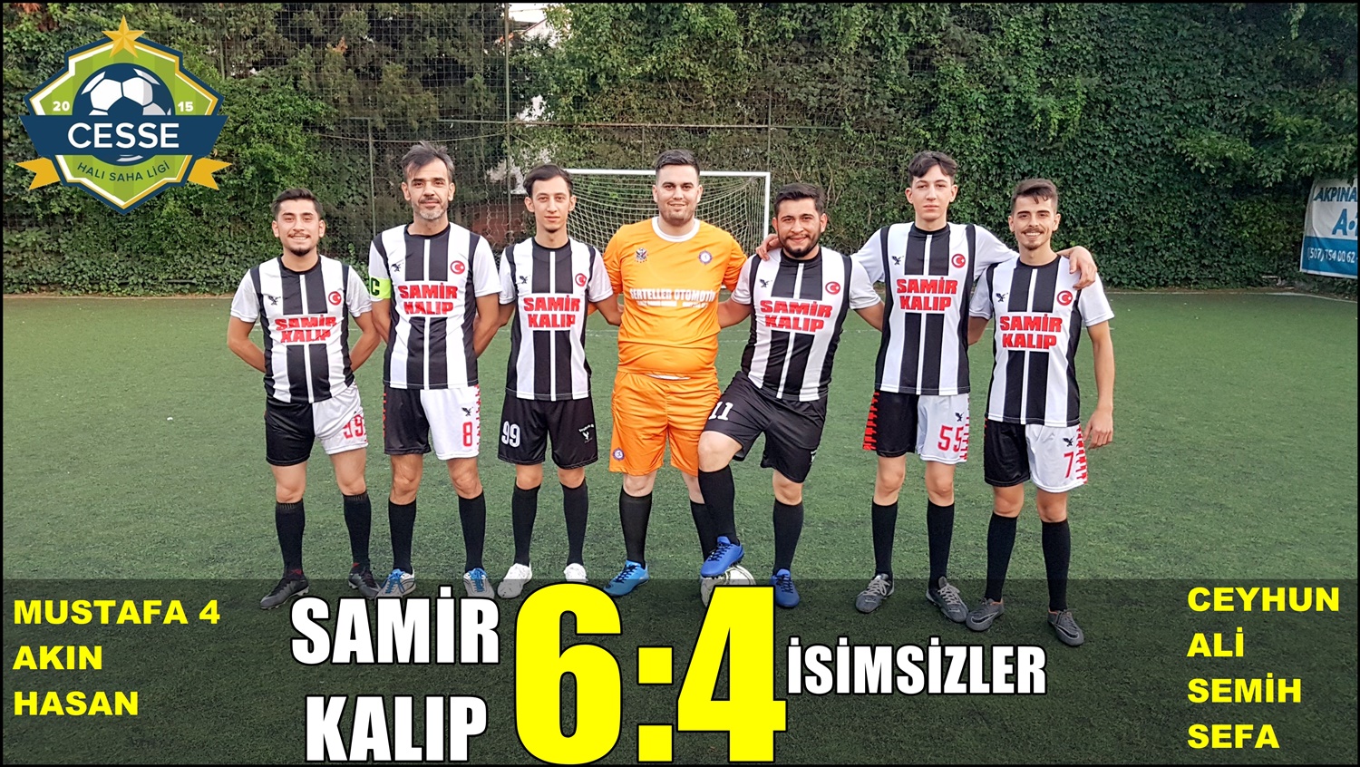 Samir Kalıp maça Mustafa’nın golleriyle fırtına gibi başlarken rakip kalede buldukları peş peşe gollerle hem skor avantajını yakaladılar hem de rakibin direncini kırdılar. 2. yarıya rehavetle başlayan ekip kalelerinde goller görseler de çabuk reaksiyon gösterip sahadan galibiyetle ayrılmasını bildiler. Mustafa 4 golüyle geceye damgasını vurup galibiyette büyük rol oynarken Akın da orta alanda oldukça etkiliydi, Hasan da savunmada rakibe göz açtırmadı.