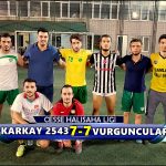 Vurguncular ile Karkay takımları karşı karşıya gelirken izleyenlerin büyük keyif aldığı maçtan kazanan çıkmadı ve takımlar sahadan 1 er puanla ayrıldılar.